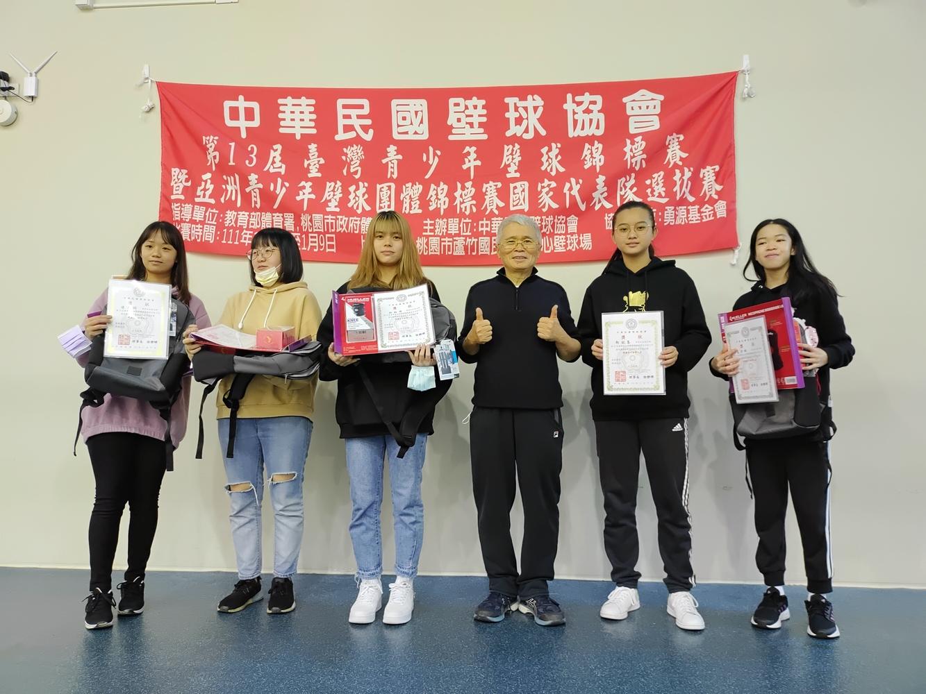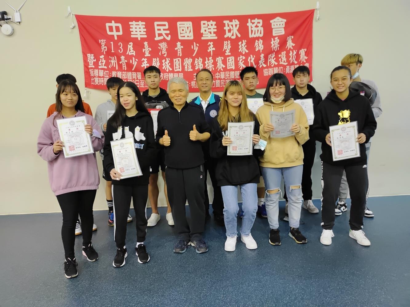 一、這次參加男子及女子組選手都為前四名為本會青少年國家代表隊及潛力培訓選手,男子組本會潛培選手蔡欣倫比現優異,在兩天的競技中技冠群雄獲得冠軍,女子組本會潛培選手林鈺珺,在19歲女子組選手升上成人組後,在國內已確定在成為最好的青少年女子選手、本會這次比賽又產生最年輕的男子及女子青少年國家代表隊選手,男子選手為潘竑叡及彭紹謙(最年輕選手)、女子選手為夏珍珠三位,都是剛滿14歲的年齡,今後會成為本會的主力選手,他們三人也是本會優秀青少年培訓選手,顯示出這一年來體育署給於本會培訓的訓練成果,,在未來幾年必能成為我國的主力選手,是本次賽會最佳的成果。